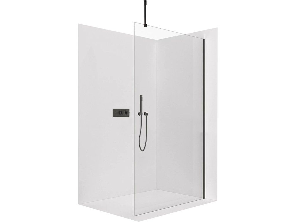 CERANO - Sprchová zástěna Walk-in Onyx Top Cube L/P - 10 mm - hranatá vzpěra - černá matná, transparentní sklo - 150x200 cm