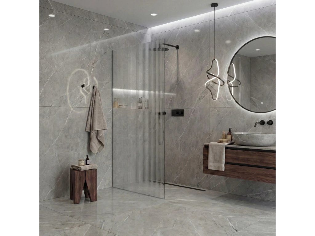 Díky promyšlené konstrukci je sklo uchyceno skrytě do profilů, které lze zapustit zcela nebo částečně ( až 14 mm do obkladů či dlažby). Bez rušivých vzpěr tak vzniká čisté, elegantní řešení, které podtrhne moderní vzhled koupelny a dodá prostoru maximální vizuální lehkost.
