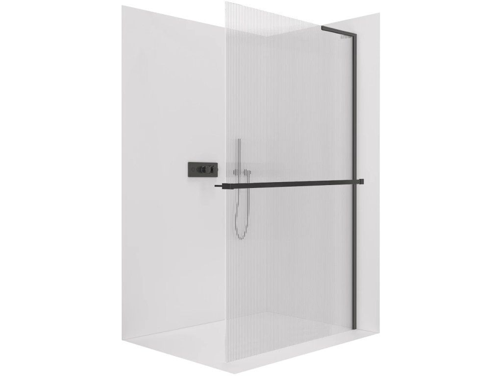 CERANO - Sprchová zástěna Walk-in Onyx L-pravá vzpěra - 8 mm + polička/držák na ručníky - černá matná, rýhované sklo - 160x200 cm