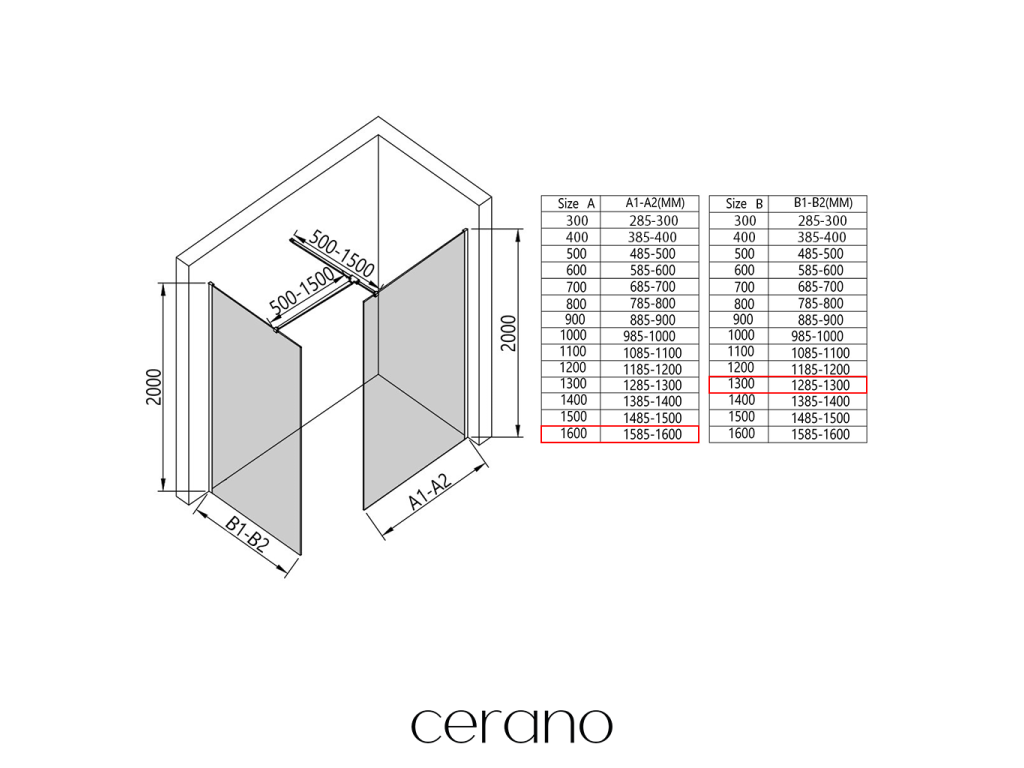 V rámci této série nabízíme širokou škálu rozměrů, abychom uspokojili různé potřeby našich zákazníků. Všechny sprchové kouty, dveře a zástěny značky Cerano jsou plně kompatibilní se sprchovými vaničkami Cerano ve stejných rozměrech, což zajišťuje bezproblémovou instalaci a dokonalé sladění. Sprchový kout lze navíc instalovat flexibilně – buď na odpovídající sprchovou vaničku, nebo přímo na podlahu podle vašich preferencí a možností koupelny.