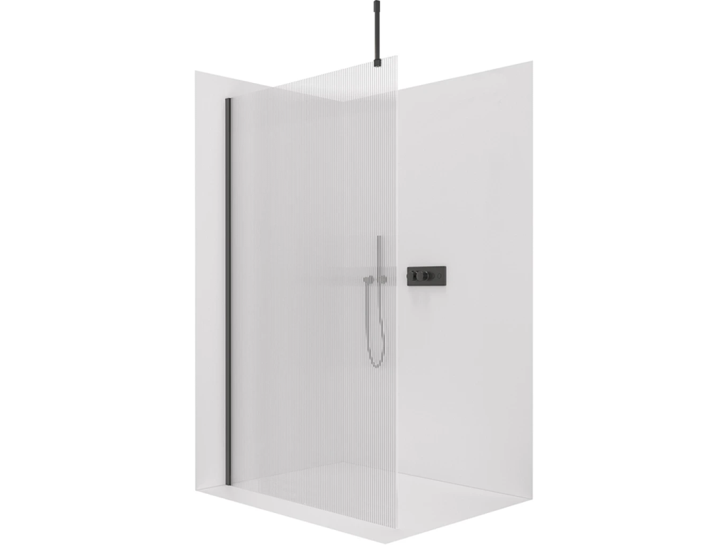 CERANO - Sprchová zástěna Walk-in Onyx Top Cube L/P - 8 mm - hranatá vzpěra - černá matná, rýhované sklo - 160x200 cm