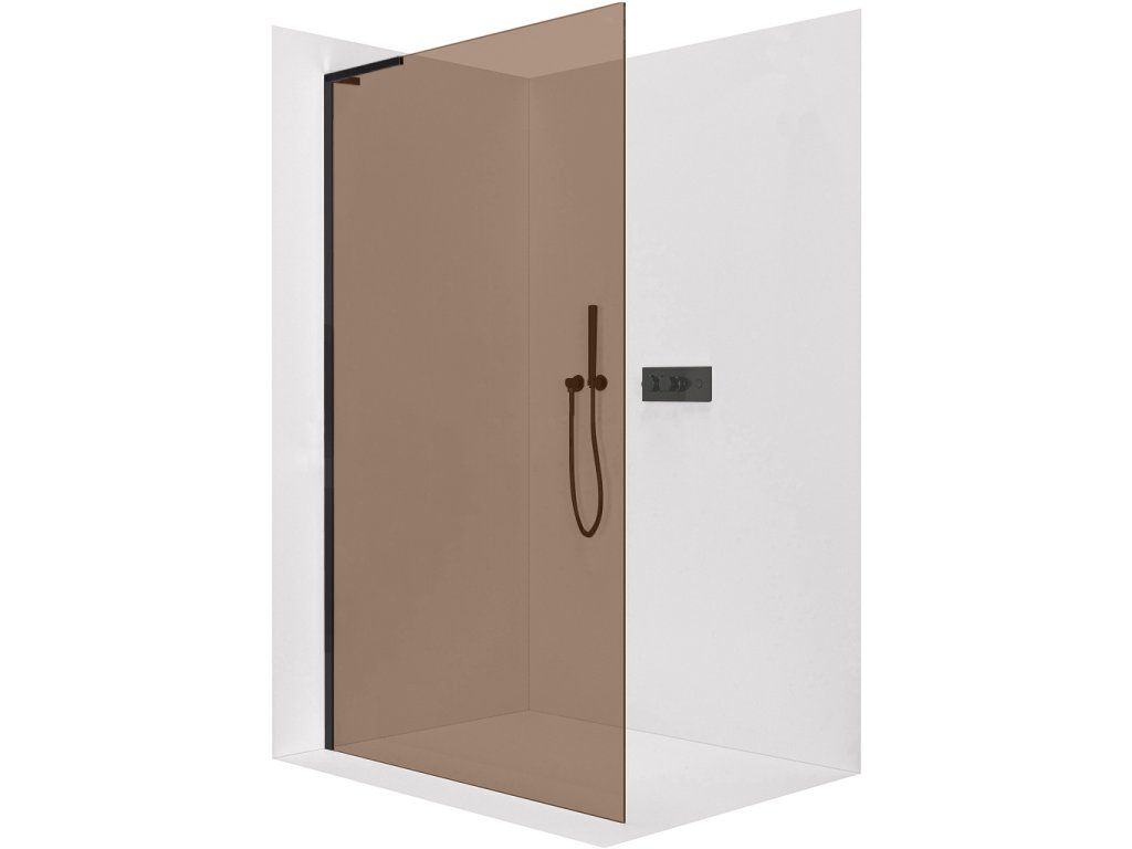 CERANO - Sprchová zástěna Walk-in Onyx L-levá vzpěra - 8 mm - černá matná, bronzové sklo - 50x200 cm