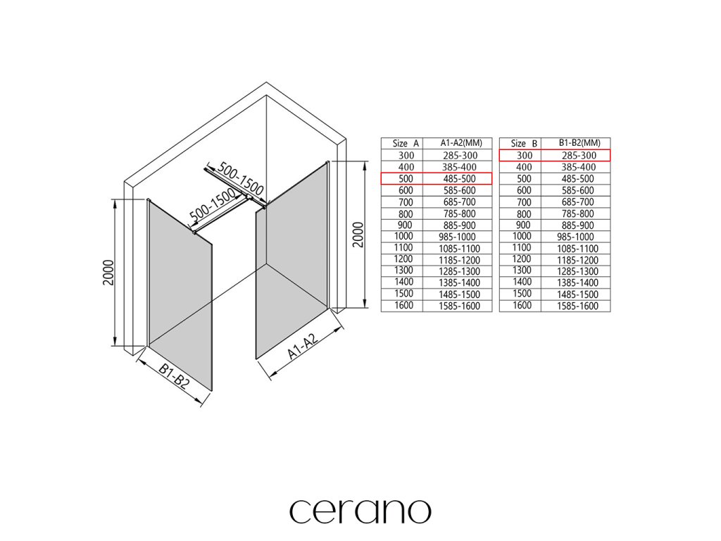 V rámci této série nabízíme širokou škálu rozměrů, abychom uspokojili různé potřeby našich zákazníků. Všechny sprchové kouty, dveře a zástěny značky Cerano jsou plně kompatibilní se sprchovými vaničkami Cerano ve stejných rozměrech, což zajišťuje bezproblémovou instalaci a dokonalé sladění. Sprchový kout lze navíc instalovat flexibilně – buď na odpovídající sprchovou vaničku, nebo přímo na podlahu podle vašich preferencí a možností koupelny.