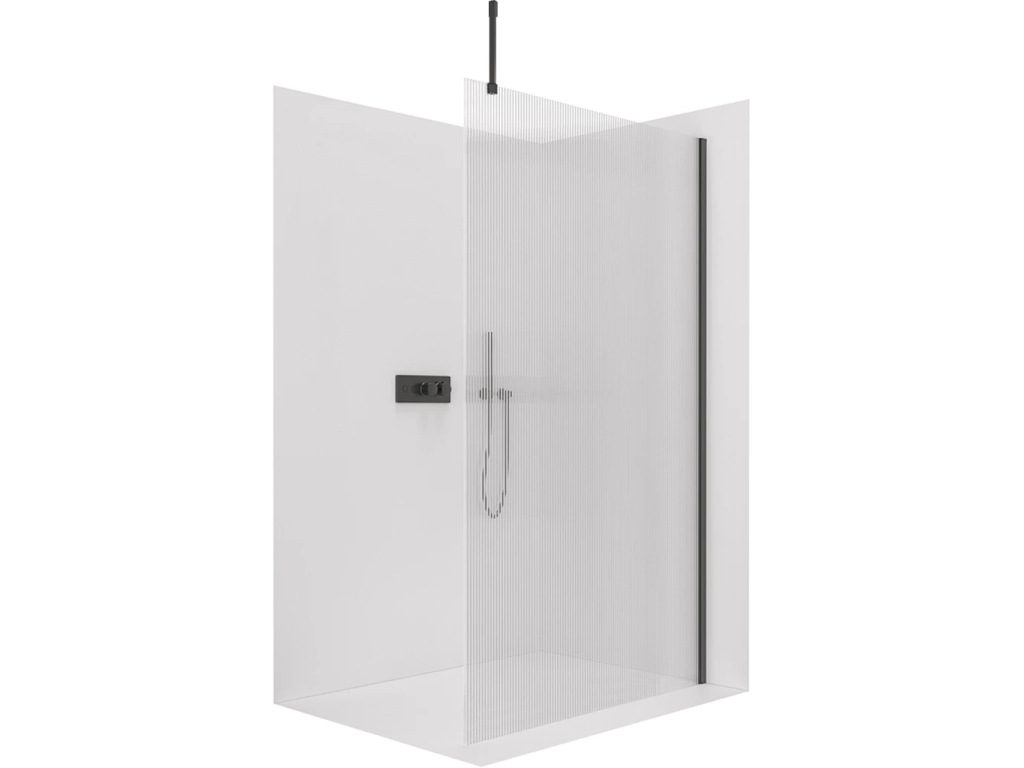CERANO - Sprchová zástěna Walk-in Onyx Top Cube L/P - 8 mm - hranatá vzpěra - černá matná, rýhované sklo - 50x200 cm