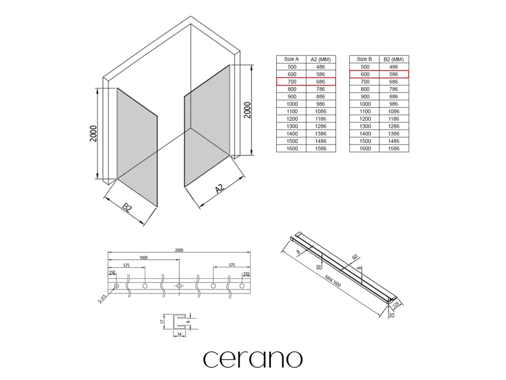 V rámci této série nabízíme širokou škálu rozměrů, abychom uspokojili různé potřeby našich zákazníků. Všechny sprchové kouty, dveře a zástěny značky Cerano jsou plně kompatibilní se sprchovými vaničkami Cerano ve stejných rozměrech, což zajišťuje bezproblémovou instalaci a dokonalé sladění. Sprchový kout lze navíc instalovat flexibilně – buď na odpovídající sprchovou vaničku, nebo přímo na podlahu podle vašich preferencí a možností koupelny.