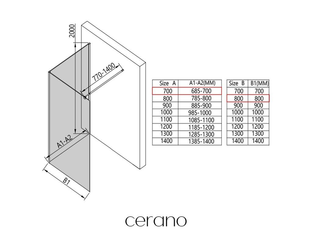 V rámci této série nabízíme širokou škálu rozměrů, abychom uspokojili různé potřeby našich zákazníků. Všechny sprchové kouty, dveře a zástěny značky Cerano jsou plně kompatibilní se sprchovými vaničkami Cerano ve stejných rozměrech, což zajišťuje bezproblémovou instalaci a dokonalé sladění. Sprchový kout lze navíc instalovat flexibilně – buď na odpovídající sprchovou vaničku, nebo přímo na podlahu podle vašich preferencí a možností koupelny.
