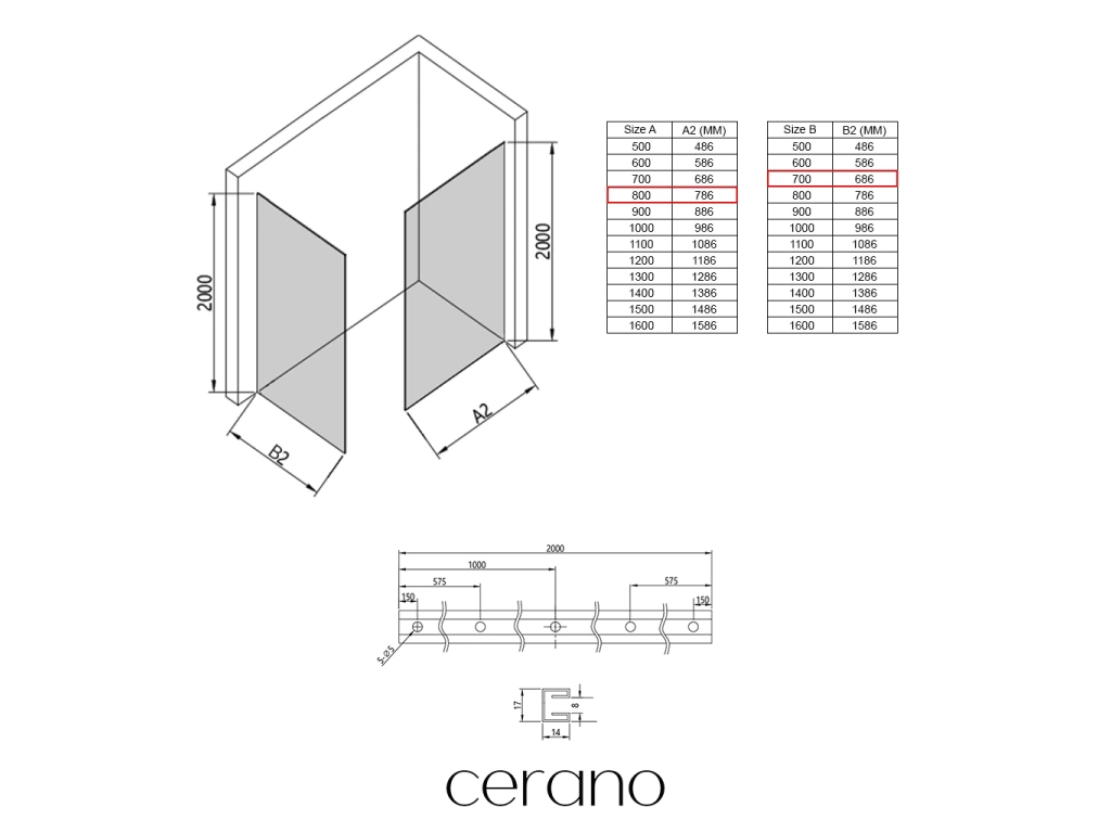 V rámci této série nabízíme širokou škálu rozměrů, abychom uspokojili různé potřeby našich zákazníků. Všechny sprchové kouty, dveře a zástěny značky Cerano jsou plně kompatibilní se sprchovými vaničkami Cerano ve stejných rozměrech, což zajišťuje bezproblémovou instalaci a dokonalé sladění. Sprchový kout lze navíc instalovat flexibilně – buď na odpovídající sprchovou vaničku, nebo přímo na podlahu podle vašich preferencí a možností koupelny.