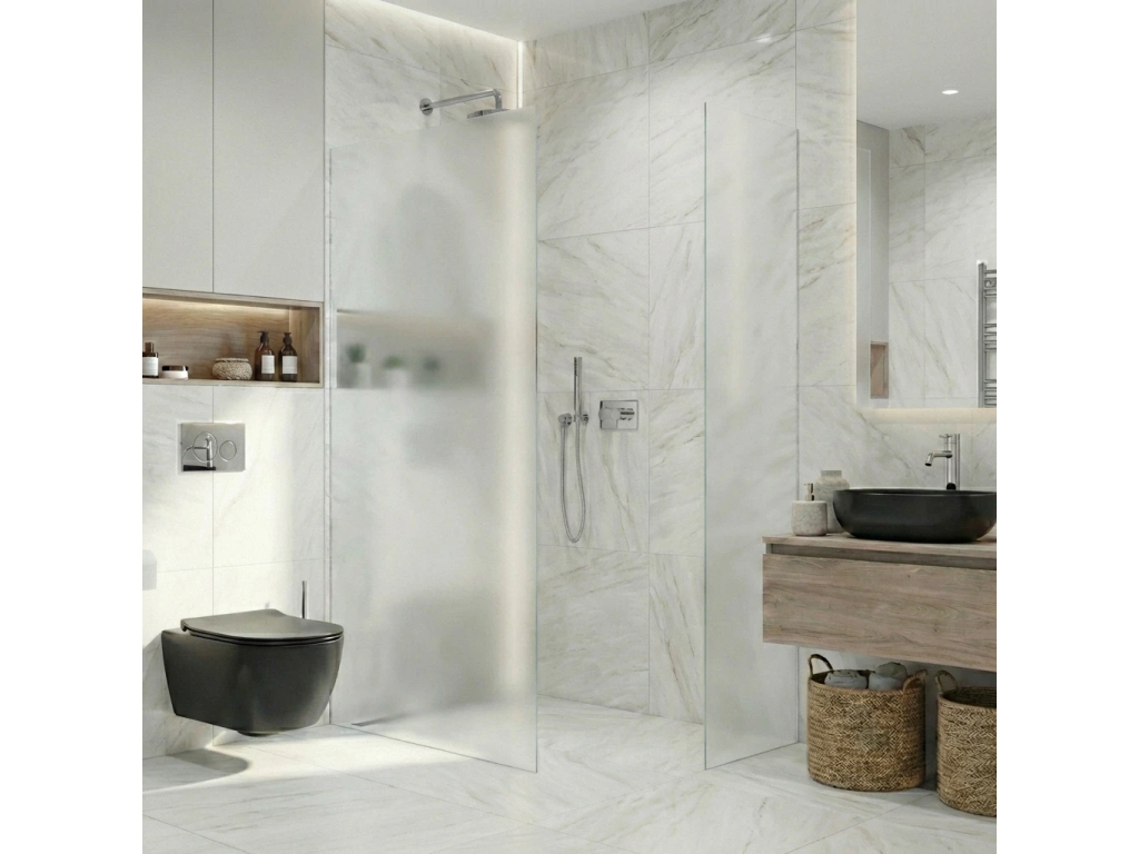 Díky promyšlené konstrukci je sklo uchyceno skrytě do profilů, které lze zapustit zcela nebo částečně ( až 14 mm do obkladů či dlažby). Bez rušivých vzpěr tak vzniká čisté, elegantní řešení, které podtrhne moderní vzhled koupelny a dodá prostoru maximální vizuální lehkost.