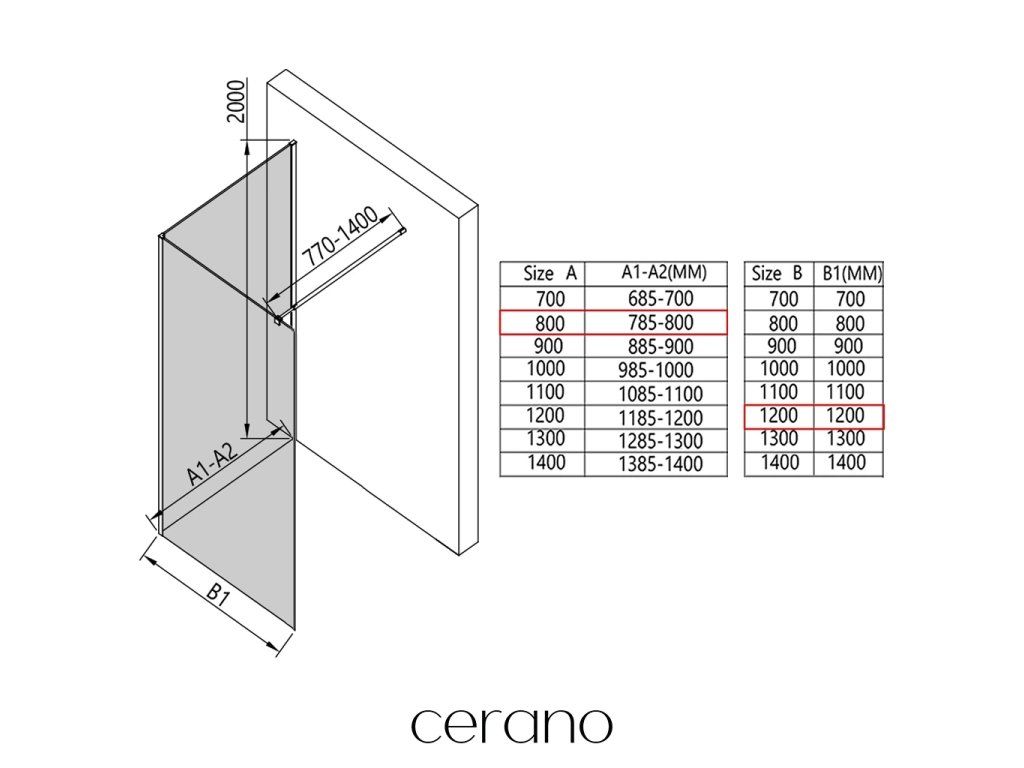 V rámci této série nabízíme širokou škálu rozměrů, abychom uspokojili různé potřeby našich zákazníků. Všechny sprchové kouty, dveře a zástěny značky Cerano jsou plně kompatibilní se sprchovými vaničkami Cerano ve stejných rozměrech, což zajišťuje bezproblémovou instalaci a dokonalé sladění. Sprchový kout lze navíc instalovat flexibilně – buď na odpovídající sprchovou vaničku, nebo přímo na podlahu podle vašich preferencí a možností koupelny.