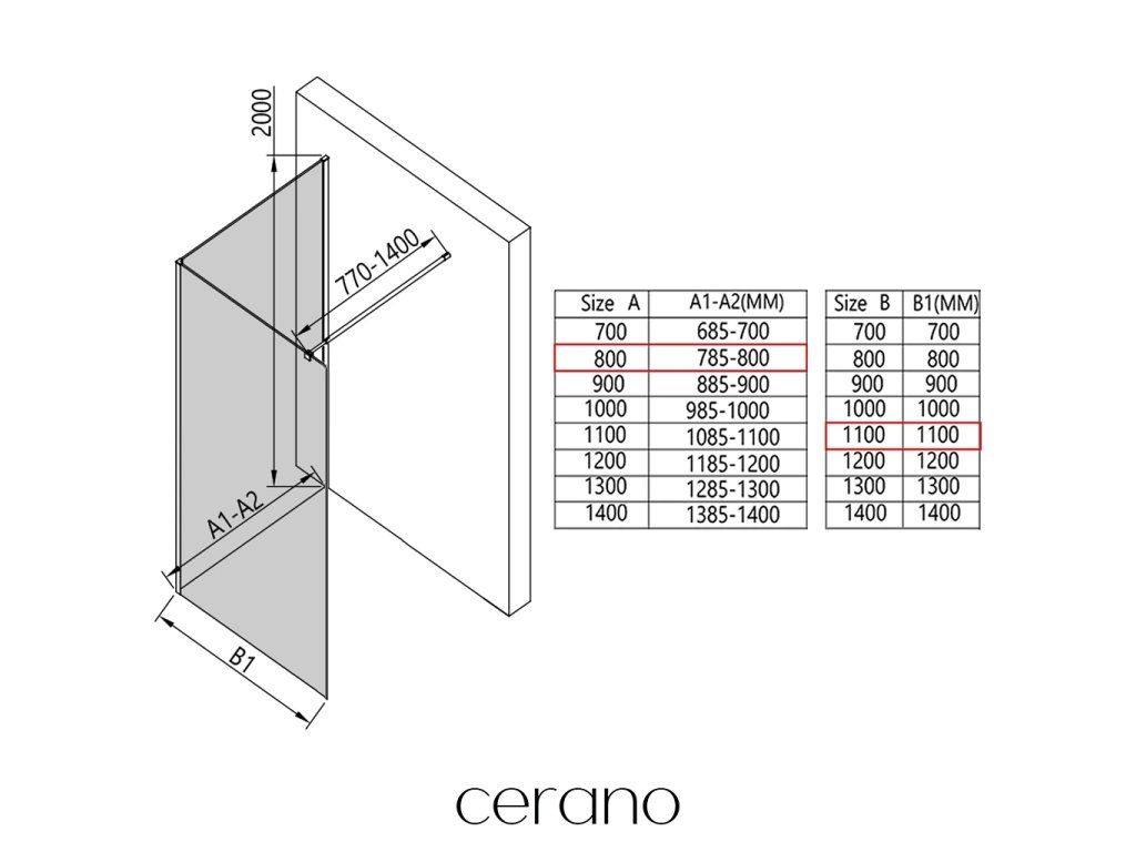 V rámci této série nabízíme širokou škálu rozměrů, abychom uspokojili různé potřeby našich zákazníků. Všechny sprchové kouty, dveře a zástěny značky Cerano jsou plně kompatibilní se sprchovými vaničkami Cerano ve stejných rozměrech, což zajišťuje bezproblémovou instalaci a dokonalé sladění. Sprchový kout lze navíc instalovat flexibilně – buď na odpovídající sprchovou vaničku, nebo přímo na podlahu podle vašich preferencí a možností koupelny.