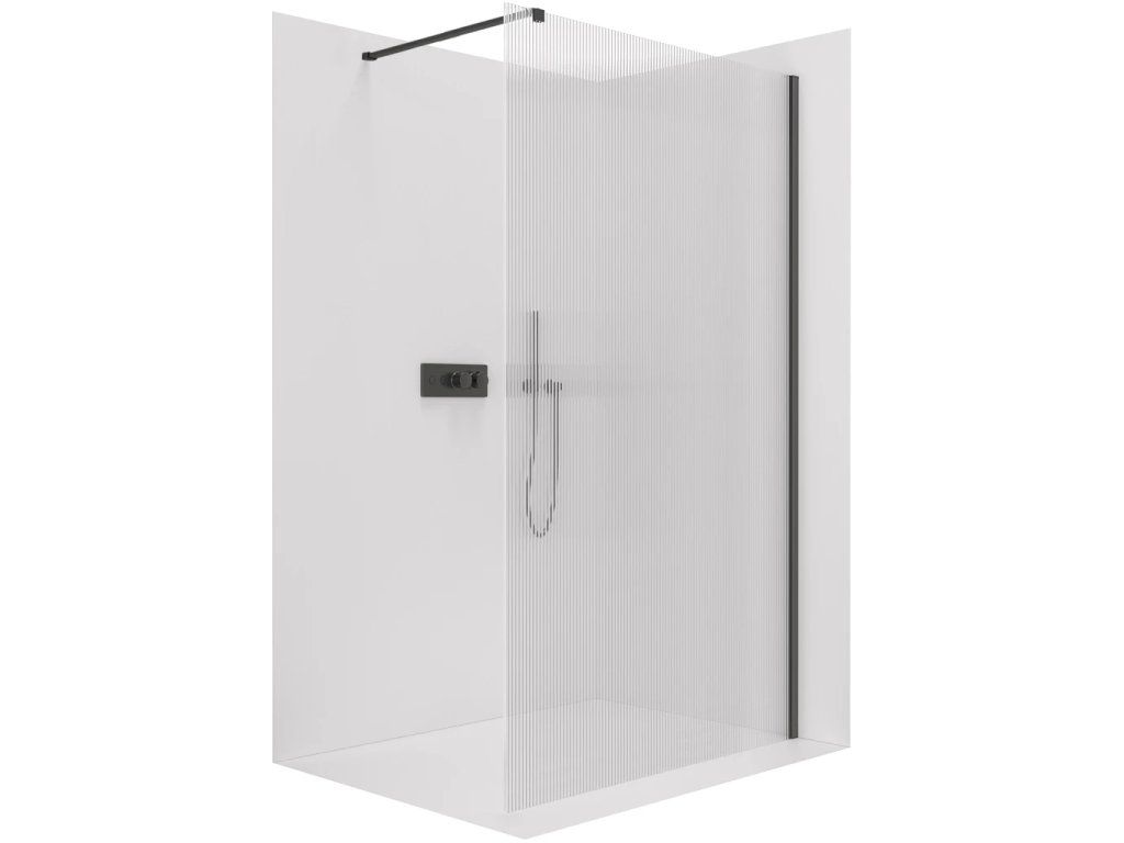 CERANO - Sprchová zástěna Walk-in Onyx Cube L/P - 8 mm - hranatá vzpěra - černá matná, rýhované sklo - 80x200 cm