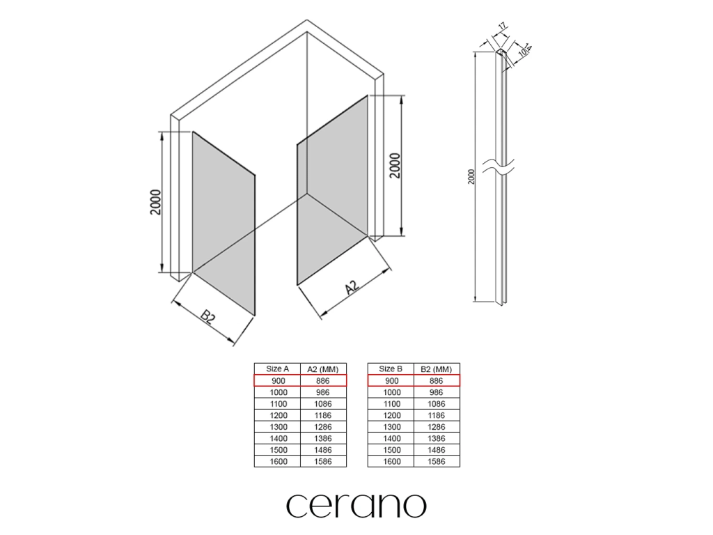 V rámci této série nabízíme širokou škálu rozměrů, abychom uspokojili různé potřeby našich zákazníků. Všechny sprchové kouty, dveře a zástěny značky Cerano jsou plně kompatibilní se sprchovými vaničkami Cerano ve stejných rozměrech, což zajišťuje bezproblémovou instalaci a dokonalé sladění. Sprchový kout lze navíc instalovat flexibilně – buď na odpovídající sprchovou vaničku, nebo přímo na podlahu podle vašich preferencí a možností koupelny.
