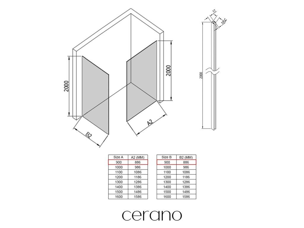 V rámci této série nabízíme širokou škálu rozměrů, abychom uspokojili různé potřeby našich zákazníků. Všechny sprchové kouty, dveře a zástěny značky Cerano jsou plně kompatibilní se sprchovými vaničkami Cerano ve stejných rozměrech, což zajišťuje bezproblémovou instalaci a dokonalé sladění. Sprchový kout lze navíc instalovat flexibilně – buď na odpovídající sprchovou vaničku, nebo přímo na podlahu podle vašich preferencí a možností koupelny.