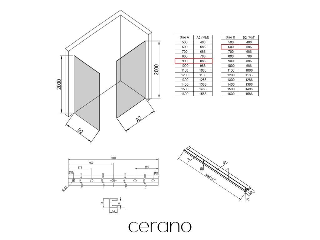 V rámci této série nabízíme širokou škálu rozměrů, abychom uspokojili různé potřeby našich zákazníků. Všechny sprchové kouty, dveře a zástěny značky Cerano jsou plně kompatibilní se sprchovými vaničkami Cerano ve stejných rozměrech, což zajišťuje bezproblémovou instalaci a dokonalé sladění. Sprchový kout lze navíc instalovat flexibilně – buď na odpovídající sprchovou vaničku, nebo přímo na podlahu podle vašich preferencí a možností koupelny.