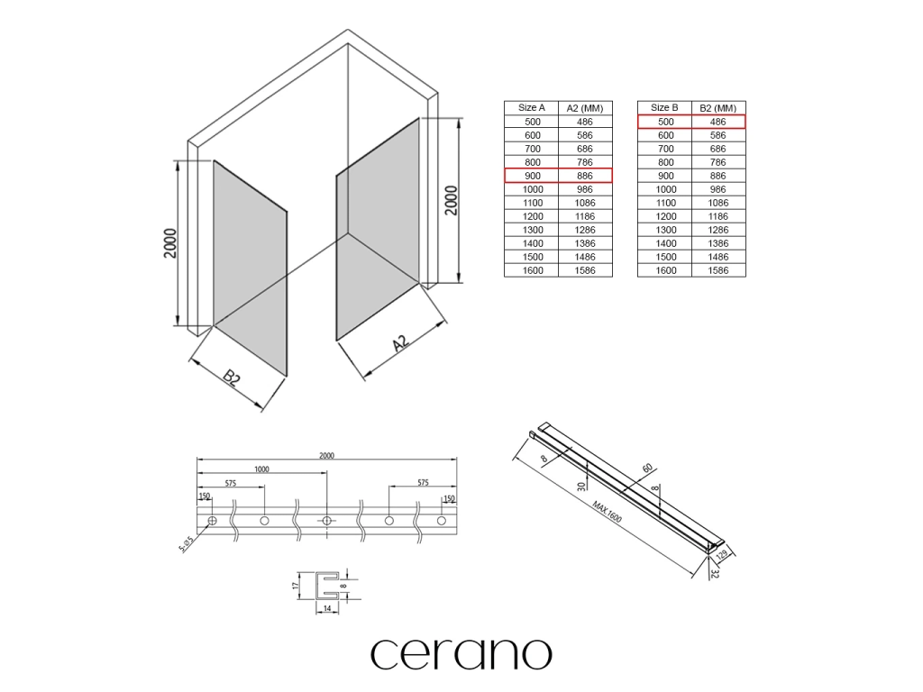 V rámci této série nabízíme širokou škálu rozměrů, abychom uspokojili různé potřeby našich zákazníků. Všechny sprchové kouty, dveře a zástěny značky Cerano jsou plně kompatibilní se sprchovými vaničkami Cerano ve stejných rozměrech, což zajišťuje bezproblémovou instalaci a dokonalé sladění. Sprchový kout lze navíc instalovat flexibilně – buď na odpovídající sprchovou vaničku, nebo přímo na podlahu podle vašich preferencí a možností koupelny.