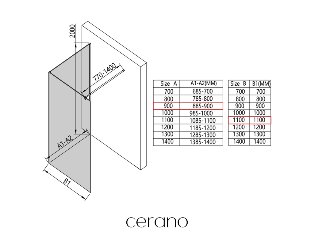 V rámci této série nabízíme širokou škálu rozměrů, abychom uspokojili různé potřeby našich zákazníků. Všechny sprchové kouty, dveře a zástěny značky Cerano jsou plně kompatibilní se sprchovými vaničkami Cerano ve stejných rozměrech, což zajišťuje bezproblémovou instalaci a dokonalé sladění. Sprchový kout lze navíc instalovat flexibilně – buď na odpovídající sprchovou vaničku, nebo přímo na podlahu podle vašich preferencí a možností koupelny.