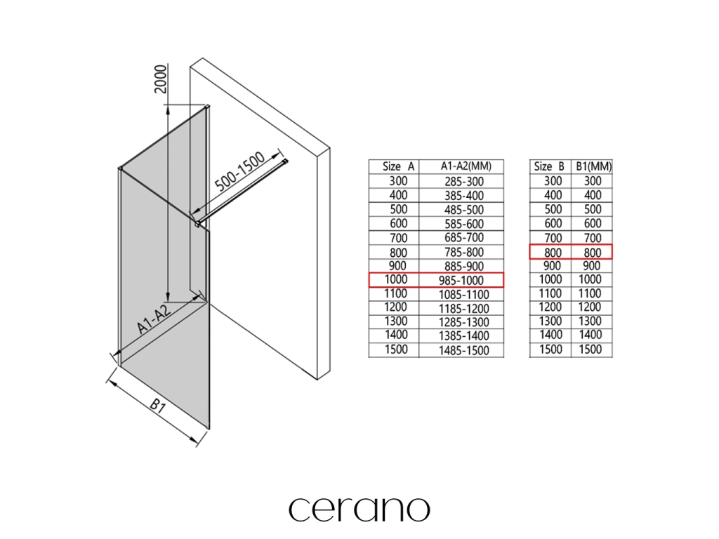 V rámci této série nabízíme širokou škálu rozměrů, abychom uspokojili různé potřeby našich zákazníků. Všechny sprchové kouty, dveře a zástěny značky Cerano jsou plně kompatibilní se sprchovými vaničkami Cerano ve stejných rozměrech, což zajišťuje bezproblémovou instalaci a dokonalé sladění. Sprchový kout lze navíc instalovat flexibilně – buď na odpovídající sprchovou vaničku, nebo přímo na podlahu podle vašich preferencí a možností koupelny.