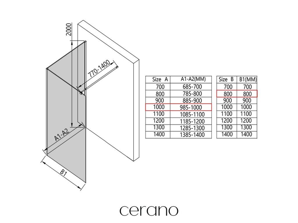 V rámci této série nabízíme širokou škálu rozměrů, abychom uspokojili různé potřeby našich zákazníků. Všechny sprchové kouty, dveře a zástěny značky Cerano jsou plně kompatibilní se sprchovými vaničkami Cerano ve stejných rozměrech, což zajišťuje bezproblémovou instalaci a dokonalé sladění. Sprchový kout lze navíc instalovat flexibilně – buď na odpovídající sprchovou vaničku, nebo přímo na podlahu podle vašich preferencí a možností koupelny.