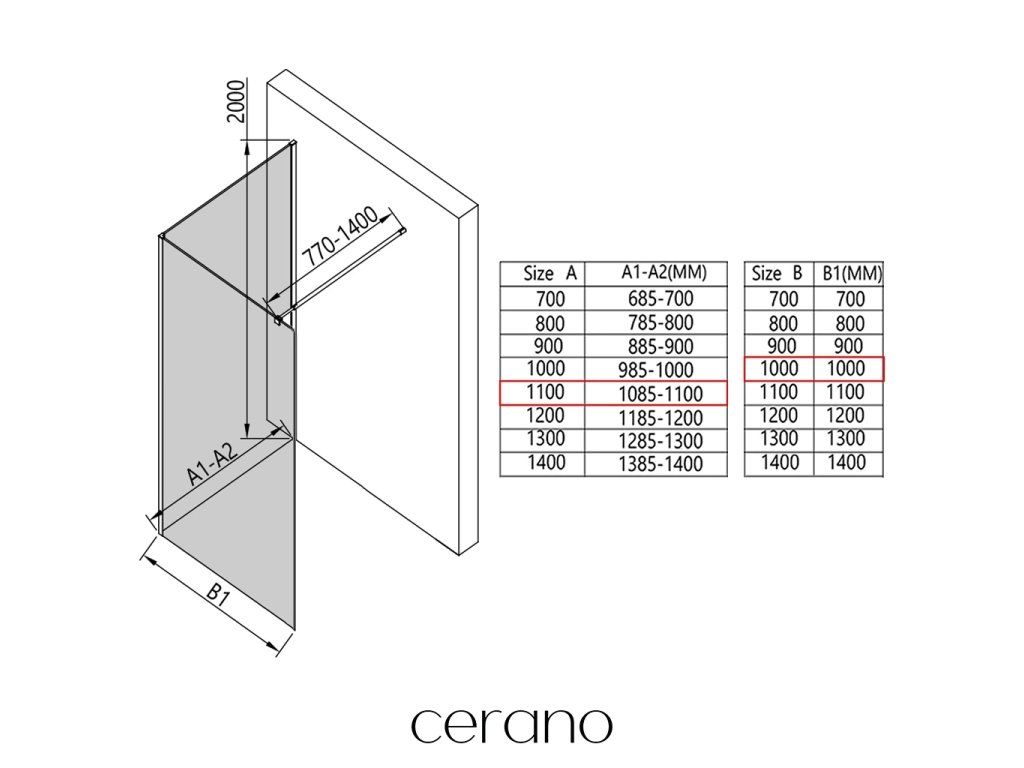 V rámci této série nabízíme širokou škálu rozměrů, abychom uspokojili různé potřeby našich zákazníků. Všechny sprchové kouty, dveře a zástěny značky Cerano jsou plně kompatibilní se sprchovými vaničkami Cerano ve stejných rozměrech, což zajišťuje bezproblémovou instalaci a dokonalé sladění. Sprchový kout lze navíc instalovat flexibilně – buď na odpovídající sprchovou vaničku, nebo přímo na podlahu podle vašich preferencí a možností koupelny.