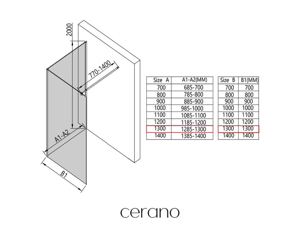 V rámci této série nabízíme širokou škálu rozměrů, abychom uspokojili různé potřeby našich zákazníků. Všechny sprchové kouty, dveře a zástěny značky Cerano jsou plně kompatibilní se sprchovými vaničkami Cerano ve stejných rozměrech, což zajišťuje bezproblémovou instalaci a dokonalé sladění. Sprchový kout lze navíc instalovat flexibilně – buď na odpovídající sprchovou vaničku, nebo přímo na podlahu podle vašich preferencí a možností koupelny.