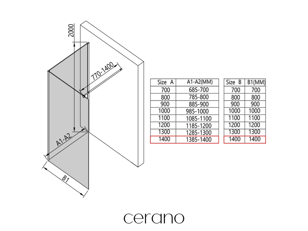 V rámci této série nabízíme širokou škálu rozměrů, abychom uspokojili různé potřeby našich zákazníků. Všechny sprchové kouty, dveře a zástěny značky Cerano jsou plně kompatibilní se sprchovými vaničkami Cerano ve stejných rozměrech, což zajišťuje bezproblémovou instalaci a dokonalé sladění. Sprchový kout lze navíc instalovat flexibilně – buď na odpovídající sprchovou vaničku, nebo přímo na podlahu podle vašich preferencí a možností koupelny.