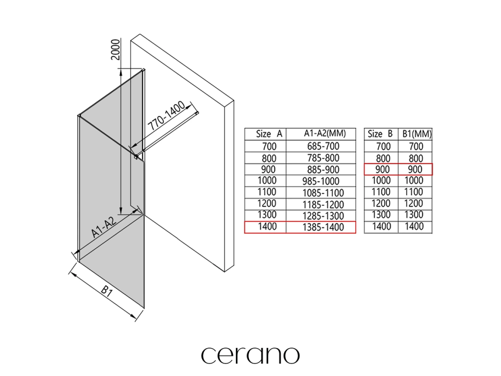V rámci této série nabízíme širokou škálu rozměrů, abychom uspokojili různé potřeby našich zákazníků. Všechny sprchové kouty, dveře a zástěny značky Cerano jsou plně kompatibilní se sprchovými vaničkami Cerano ve stejných rozměrech, což zajišťuje bezproblémovou instalaci a dokonalé sladění. Sprchový kout lze navíc instalovat flexibilně – buď na odpovídající sprchovou vaničku, nebo přímo na podlahu podle vašich preferencí a možností koupelny.