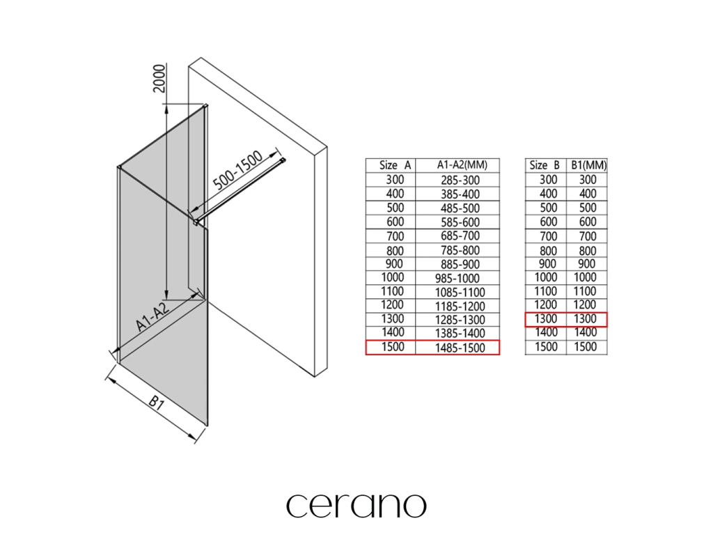 V rámci této série nabízíme širokou škálu rozměrů, abychom uspokojili různé potřeby našich zákazníků. Všechny sprchové kouty, dveře a zástěny značky Cerano jsou plně kompatibilní se sprchovými vaničkami Cerano ve stejných rozměrech, což zajišťuje bezproblémovou instalaci a dokonalé sladění. Sprchový kout lze navíc instalovat flexibilně – buď na odpovídající sprchovou vaničku, nebo přímo na podlahu podle vašich preferencí a možností koupelny.