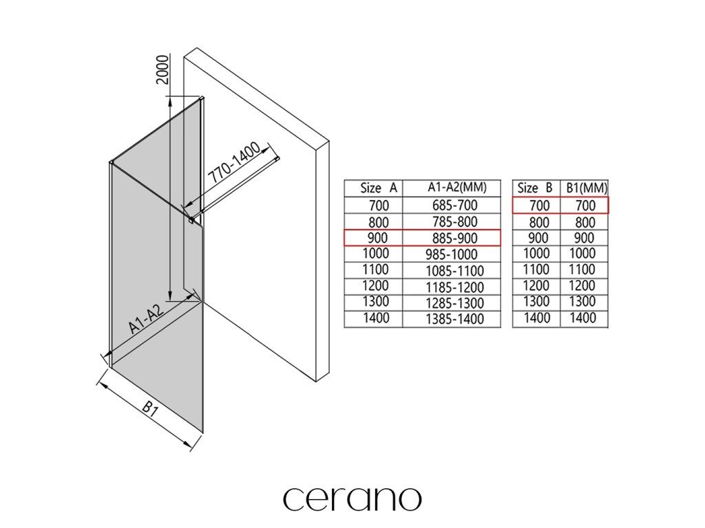 V rámci této série nabízíme širokou škálu rozměrů, abychom uspokojili různé potřeby našich zákazníků. Všechny sprchové kouty, dveře a zástěny značky Cerano jsou plně kompatibilní se sprchovými vaničkami Cerano ve stejných rozměrech, což zajišťuje bezproblémovou instalaci a dokonalé sladění. Sprchový kout lze navíc instalovat flexibilně – buď na odpovídající sprchovou vaničku, nebo přímo na podlahu podle vašich preferencí a možností koupelny.