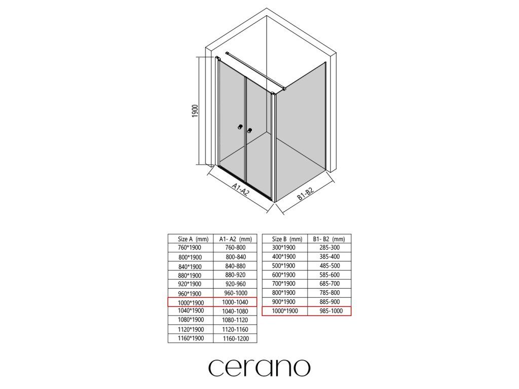 V rámci této série nabízíme širokou škálu rozměrů, abychom uspokojili různé potřeby našich zákazníků. Všechny sprchové kouty, dveře a zástěny značky CERANO jsou plně kompatibilní se sprchovými vaničkami CERANO ve stejných rozměrech, což zajišťuje bezproblémovou instalaci a dokonalé sladění.
