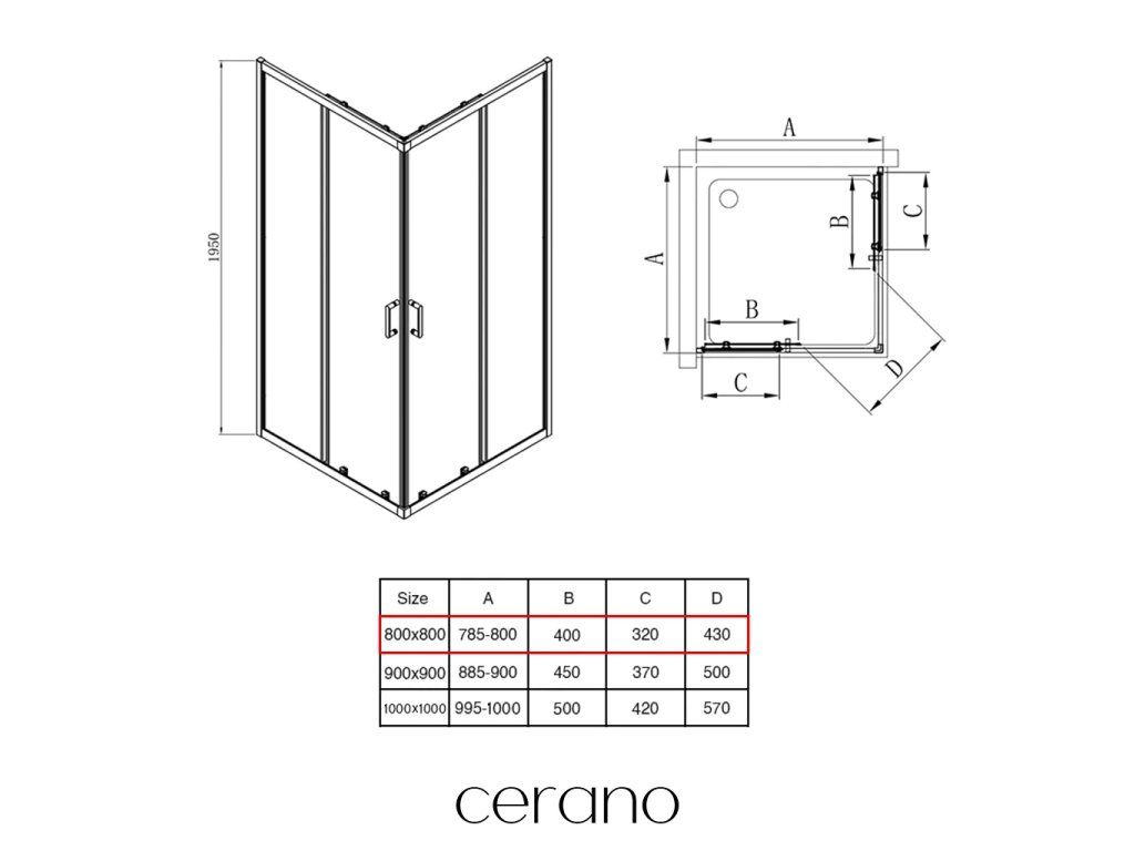 CERANO - Sprchový kout Fabrizio L/P - 5 mm - chrom, transparentní sklo - 80x80x195 cm - posuvný