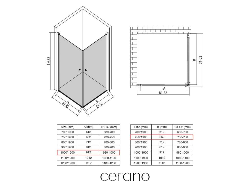 V rámci této série nabízíme širokou škálu rozměrů, abychom uspokojili různé potřeby našich zákazníků. Všechny sprchové kouty, dveře a zástěny značky CERANO jsou plně kompatibilní se sprchovými vaničkami CERANO ve stejných rozměrech, což zajišťuje bezproblémovou instalaci a dokonalé sladění.