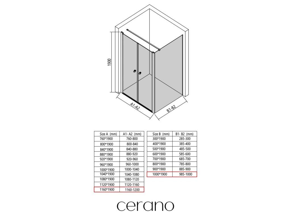 V rámci této série nabízíme širokou škálu rozměrů, abychom uspokojili různé potřeby našich zákazníků. Všechny sprchové kouty, dveře a zástěny značky CERANO jsou plně kompatibilní se sprchovými vaničkami CERANO ve stejných rozměrech, což zajišťuje bezproblémovou instalaci a dokonalé sladění.