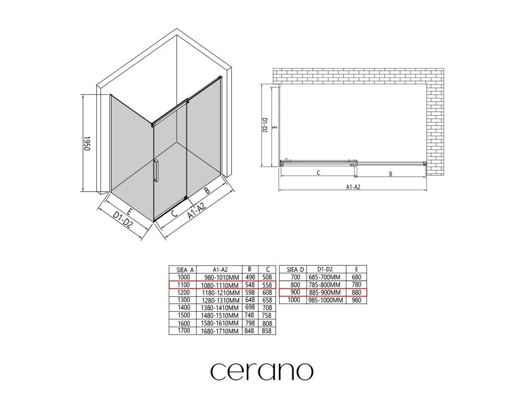 V rámci této série nabízíme širokou škálu rozměrů, abychom uspokojili různé potřeby našich zákazníků. Všechny sprchové kouty, dveře a zástěny značky CERANO jsou plně kompatibilní se sprchovými vaničkami CERANO ve stejných rozměrech, což zajišťuje bezproblémovou instalaci a dokonalé sladění. Sprchový kout lze navíc instalovat flexibilně – buď na odpovídající sprchovou vaničku, nebo přímo na podlahu podle vašich preferencí a možností koupelny.