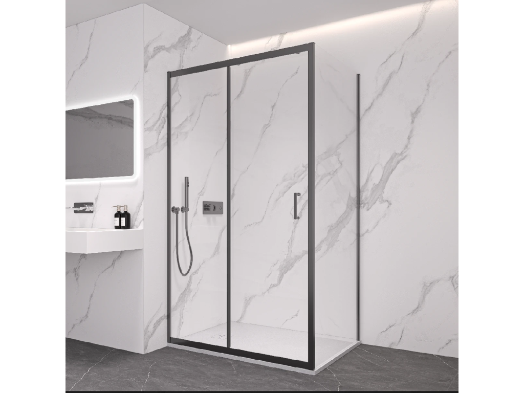CERANO - Sprchový kout Orlano L/P - 5 mm - černá matná, transparentní sklo - 110x80x195 cm - posuvný