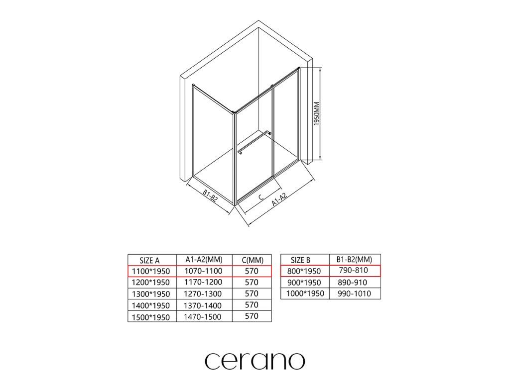 V rámci této série nabízíme širokou škálu rozměrů, abychom uspokojili různé potřeby našich zákazníků. Všechny sprchové kouty, dveře a zástěny značky CERANO jsou plně kompatibilní se sprchovými vaničkami CERANO ve stejných rozměrech, což zajišťuje bezproblémovou instalaci a dokonalé sladění. Sprchový kout lze navíc instalovat flexibilně – buď na odpovídající sprchovou vaničku, nebo přímo na podlahu podle vašich preferencí a možností koupelny.