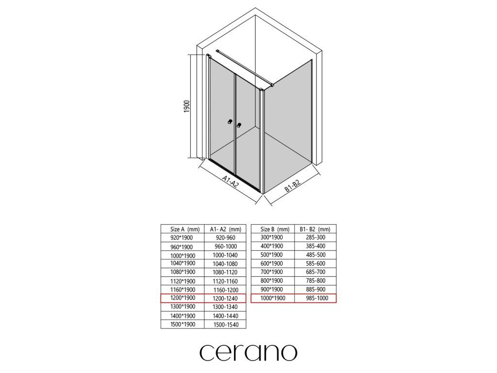 V rámci této série nabízíme širokou škálu rozměrů, abychom uspokojili různé potřeby našich zákazníků. Všechny sprchové kouty, dveře a zástěny značky CERANO jsou plně kompatibilní se sprchovými vaničkami CERANO ve stejných rozměrech, což zajišťuje bezproblémovou instalaci a dokonalé sladění.