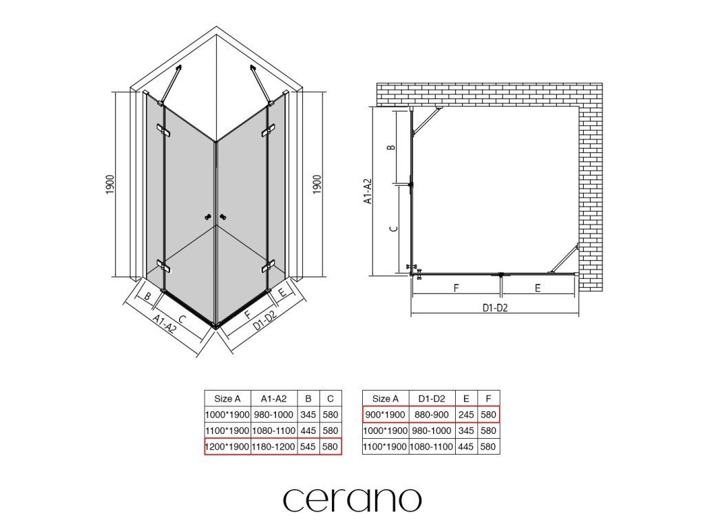 V rámci této série nabízíme širokou škálu rozměrů, abychom uspokojili různé potřeby našich zákazníků. Všechny sprchové kouty, dveře a zástěny značky CERANO jsou plně kompatibilní se sprchovými vaničkami CERANO ve stejných rozměrech, což zajišťuje bezproblémovou instalaci a dokonalé sladění. Sprchový kout lze navíc instalovat flexibilně – buď na odpovídající sprchovou vaničku, nebo přímo na podlahu podle vašich preferencí a možností koupelny.