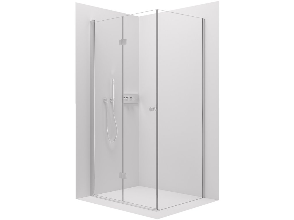 Dveře využívají skládací (zalamovací) systém otevírání, který je ideální pro menší koupelny s omezeným prostorem před sprchovým koutem. Dveře jsou zavěšeny na zapuštěných pantech se systémem pneumatického přizvednutí.