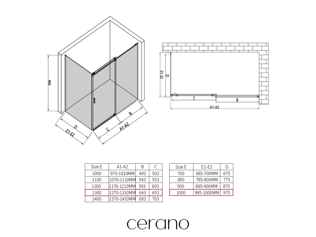 V rámci této série nabízíme širokou škálu rozměrů, abychom uspokojili různé potřeby našich zákazníků. Všechny sprchové kouty, dveře a zástěny značky CERANO jsou plně kompatibilní se sprchovými vaničkami CERANO ve stejných rozměrech, což zajišťuje bezproblémovou instalaci a dokonalé sladění. Sprchový kout lze navíc instalovat flexibilně – buď na odpovídající sprchovou vaničku, nebo přímo na podlahu podle vašich preferencí a možností koupelny.