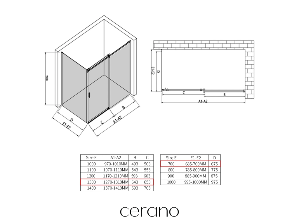 V rámci této série nabízíme širokou škálu rozměrů, abychom uspokojili různé potřeby našich zákazníků. Všechny sprchové kouty, dveře a zástěny značky CERANO jsou plně kompatibilní se sprchovými vaničkami CERANO ve stejných rozměrech, což zajišťuje bezproblémovou instalaci a dokonalé sladění. Sprchový kout lze navíc instalovat flexibilně – buď na odpovídající sprchovou vaničku, nebo přímo na podlahu podle vašich preferencí a možností koupelny.