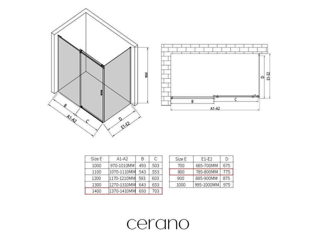 V rámci této série nabízíme širokou škálu rozměrů, abychom uspokojili různé potřeby našich zákazníků. Všechny sprchové kouty, dveře a zástěny značky CERANO jsou plně kompatibilní se sprchovými vaničkami CERANO ve stejných rozměrech, což zajišťuje bezproblémovou instalaci a dokonalé sladění. Sprchový kout lze navíc instalovat flexibilně – buď na odpovídající sprchovou vaničku, nebo přímo na podlahu podle vašich preferencí a možností koupelny.