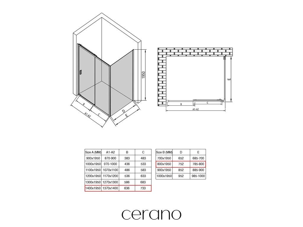 V rámci této série nabízíme širokou škálu rozměrů, abychom uspokojili různé potřeby našich zákazníků. Všechny sprchové kouty, dveře a zástěny značky CERANO jsou plně kompatibilní se sprchovými vaničkami CERANO ve stejných rozměrech, což zajišťuje bezproblémovou instalaci a dokonalé sladění. Sprchový kout lze navíc instalovat flexibilně – buď na odpovídající sprchovou vaničku, nebo přímo na podlahu podle vašich preferencí a možností koupelny.