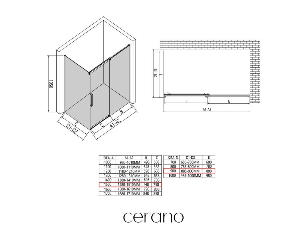 V rámci této série nabízíme širokou škálu rozměrů, abychom uspokojili různé potřeby našich zákazníků. Všechny sprchové kouty, dveře a zástěny značky CERANO jsou plně kompatibilní se sprchovými vaničkami CERANO ve stejných rozměrech, což zajišťuje bezproblémovou instalaci a dokonalé sladění. Sprchový kout lze navíc instalovat flexibilně – buď na odpovídající sprchovou vaničku, nebo přímo na podlahu podle vašich preferencí a možností koupelny.