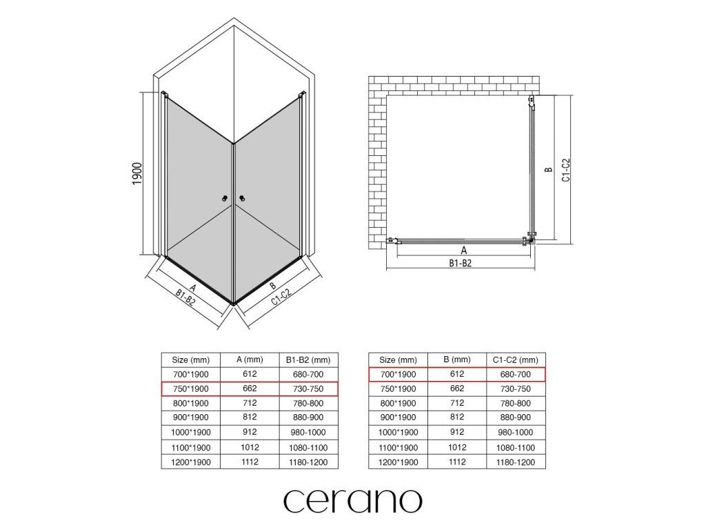 V rámci této série nabízíme širokou škálu rozměrů, abychom uspokojili různé potřeby našich zákazníků. Všechny sprchové kouty, dveře a zástěny značky CERANO jsou plně kompatibilní se sprchovými vaničkami CERANO ve stejných rozměrech, což zajišťuje bezproblémovou instalaci a dokonalé sladění.