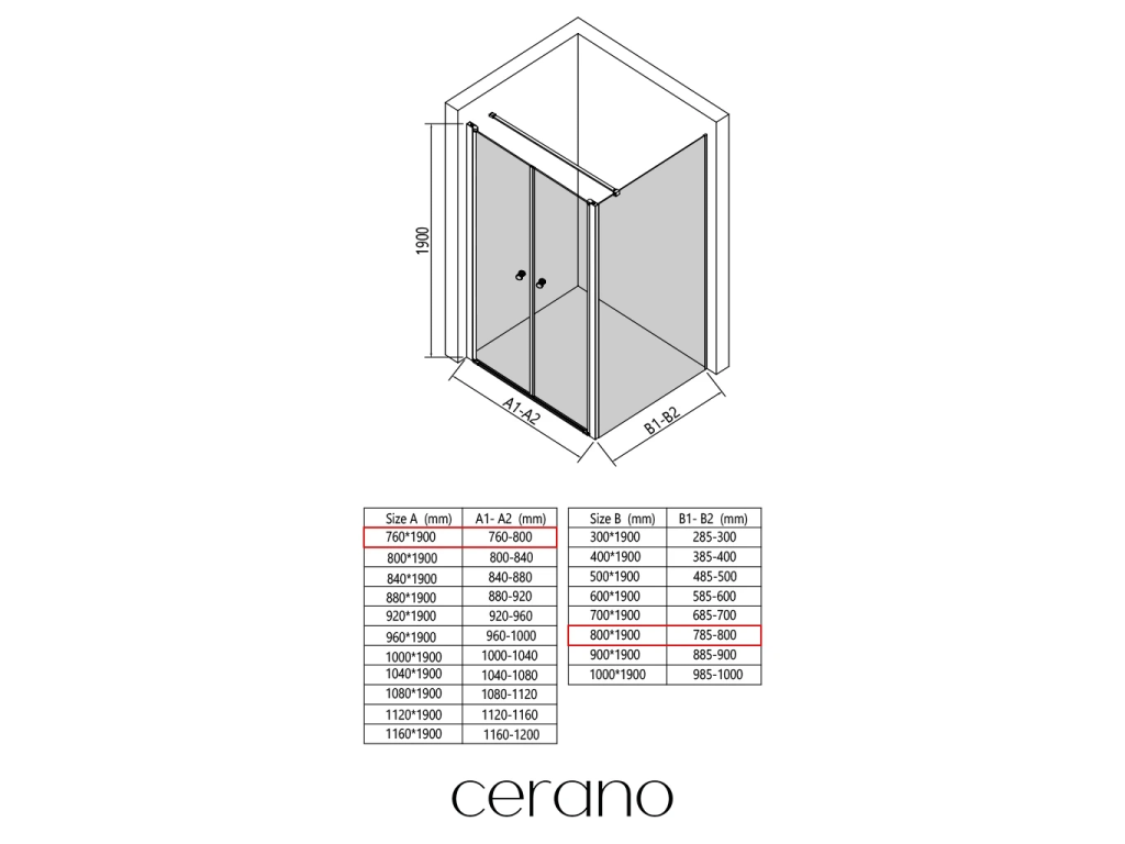 V rámci této série nabízíme širokou škálu rozměrů, abychom uspokojili různé potřeby našich zákazníků. Všechny sprchové kouty, dveře a zástěny značky CERANO jsou plně kompatibilní se sprchovými vaničkami CERANO ve stejných rozměrech, což zajišťuje bezproblémovou instalaci a dokonalé sladění.