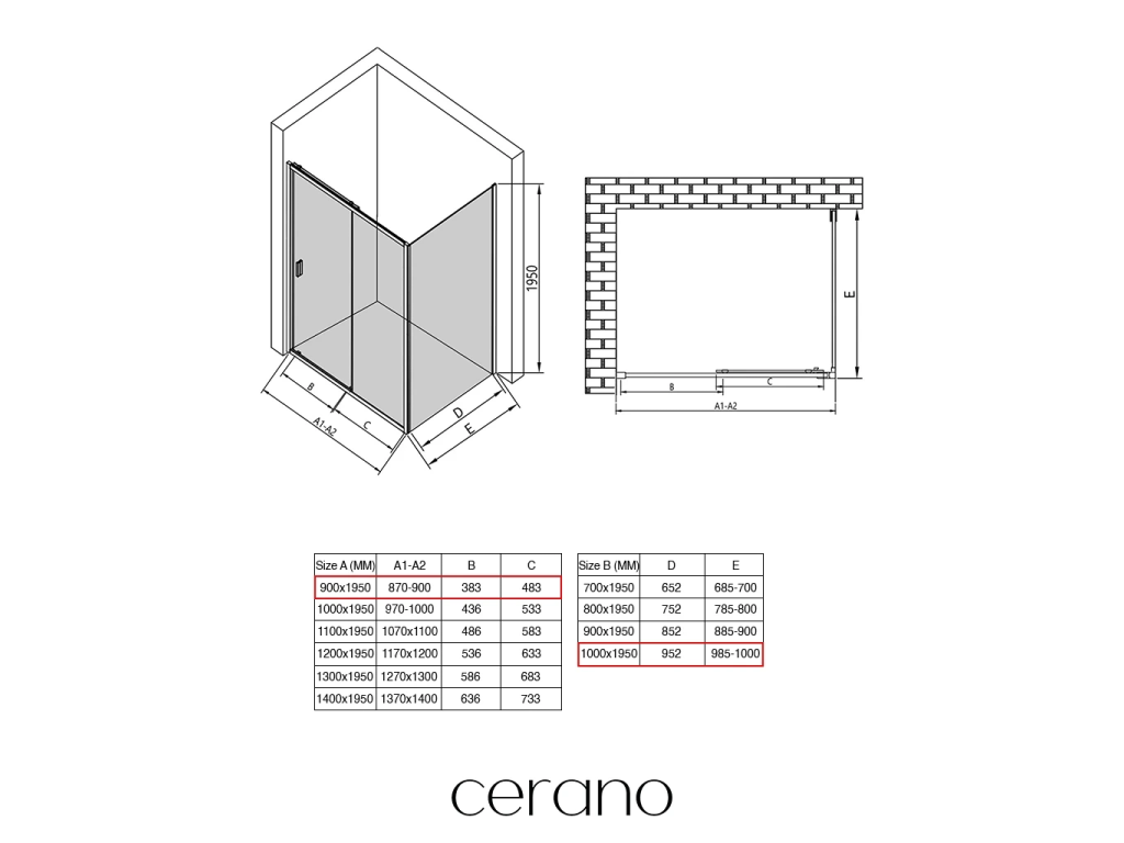 V rámci této série nabízíme širokou škálu rozměrů, abychom uspokojili různé potřeby našich zákazníků. Všechny sprchové kouty, dveře a zástěny značky CERANO jsou plně kompatibilní se sprchovými vaničkami CERANO ve stejných rozměrech, což zajišťuje bezproblémovou instalaci a dokonalé sladění. Sprchový kout lze navíc instalovat flexibilně – buď na odpovídající sprchovou vaničku, nebo přímo na podlahu podle vašich preferencí a možností koupelny.