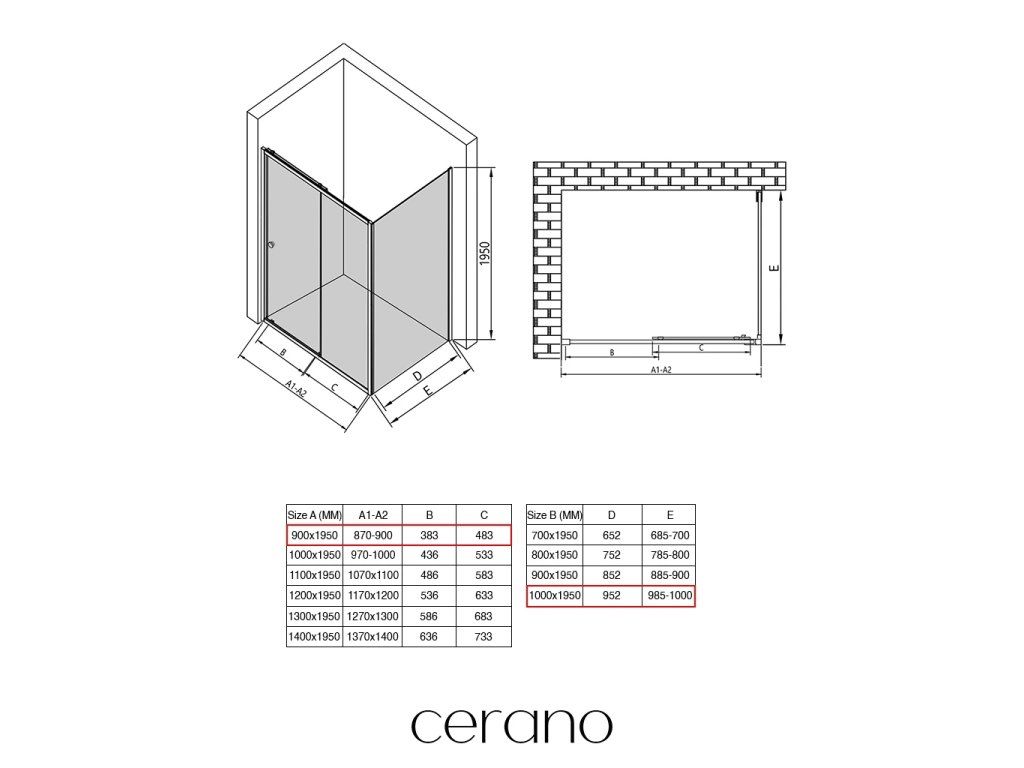 V rámci této série nabízíme širokou škálu rozměrů, abychom uspokojili různé potřeby našich zákazníků. Všechny sprchové kouty, dveře a zástěny značky CERANO jsou plně kompatibilní se sprchovými vaničkami CERANO ve stejných rozměrech, což zajišťuje bezproblémovou instalaci a dokonalé sladění. Sprchový kout lze navíc instalovat flexibilně – buď na odpovídající sprchovou vaničku, nebo přímo na podlahu podle vašich preferencí a možností koupelny.