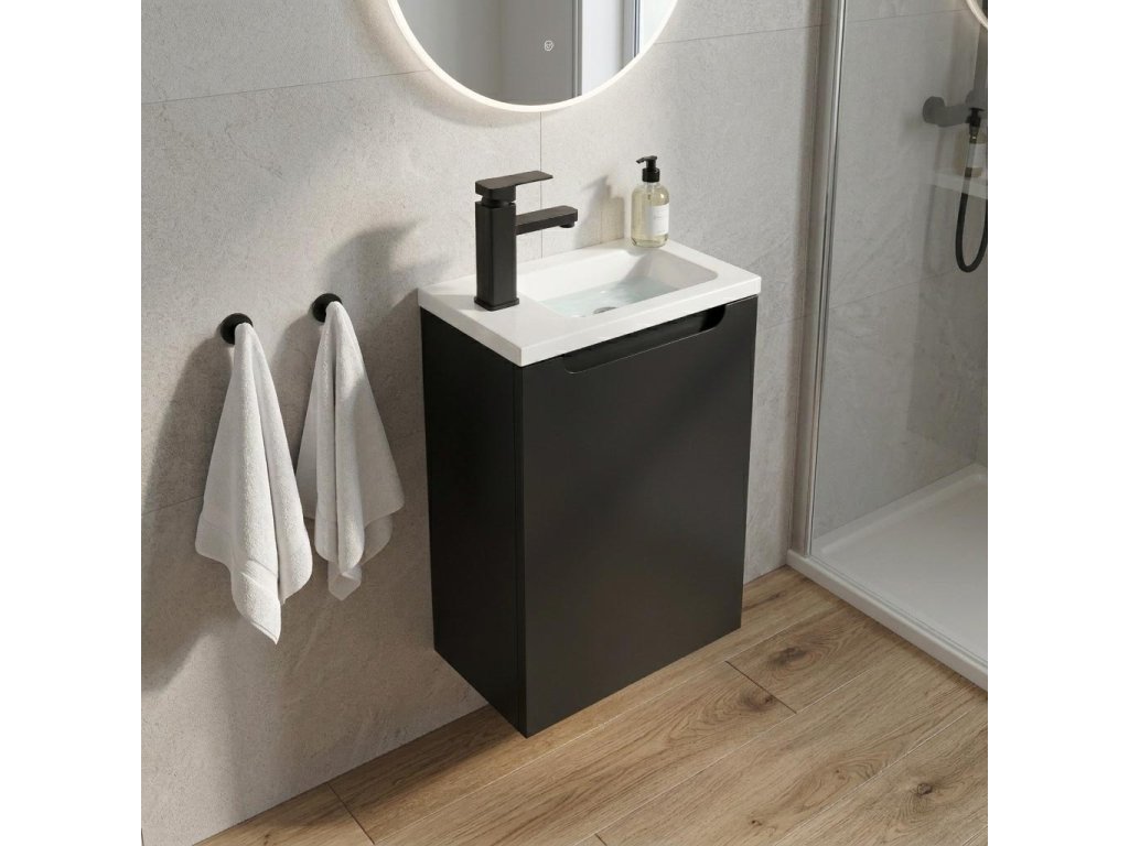 CERANO - Umyvadlová skříňka pro WC Sora - černá matná - 39,5x22x55 cm