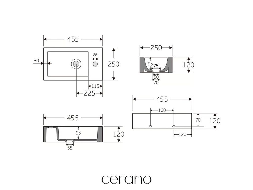 CERANO - Umývátko keramické Vivo - závěsné pravé - bílá lesklá - 45,5x25 cm