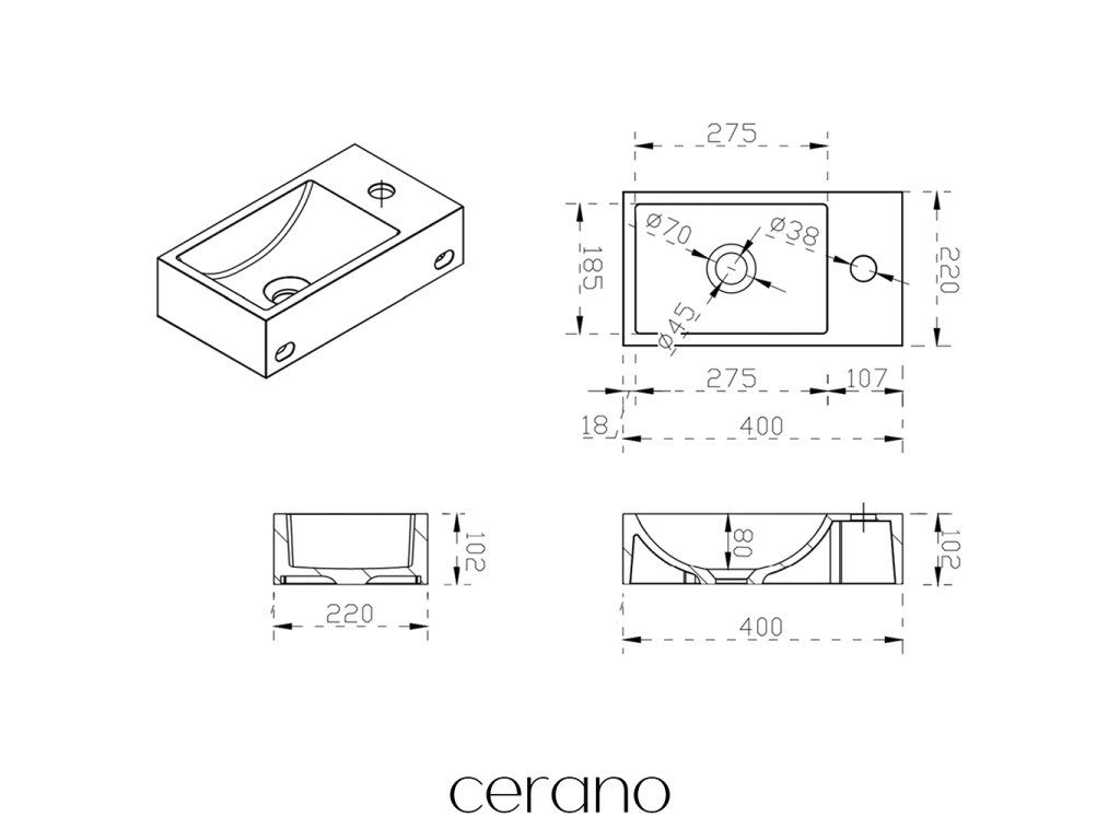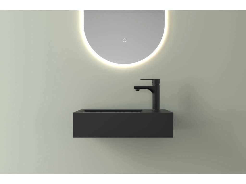 CERANO - Umývátko z litého mramoru Teo - závěsné pravé - černá matná - 40x22 cm